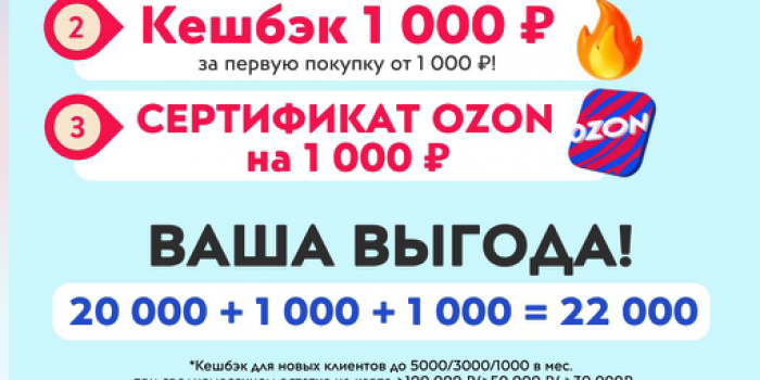 1. Сертификат Озон, Wildberries, Золотое Яблоко на 1000 ₽!